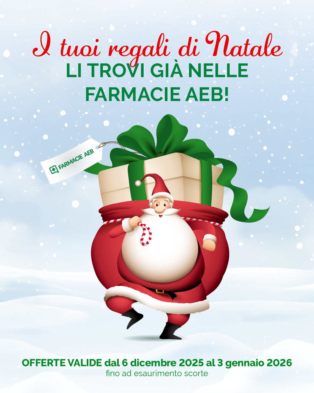 I tuoi regali nelle Farmacie AEB Published On5 Dicembre 2025 Novità I tuoi regali di Natale sono già nelle Farmacie AEB! Vieni a scoprire tutti i prodotti scontati per le feste! Clicca qui ? Promozioni Natalizie
